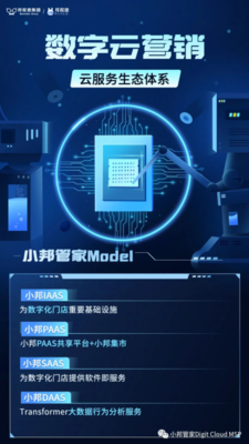 小邦管家具备四大核心能力。首先,有一个为数字化门店重要基础设施—IaaS系统,借助小邦管家,店铺可沉淀客户资产于私域,积累客户消费数据、订单数据等信息,并进行高效转化,助力店铺从数据内实现系统化管理;其次成功构造了一个数字应用集成的SaaS平台,为商家提供全链路、全场景、一体化的SaaS产品和创新应用;还有就是,提供了一个数字能力共享的PaaS平台+小邦集市(平台),可供B端门店用户、商圈商家共建和使用从而打造一个数字生态创新的共享平台;最后,打造了一个Transformer大数据行为分析服务DaaS平台,可同时满足商家标准化和个性化需求。